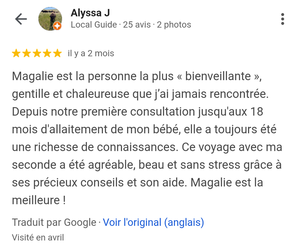 Vous pouvez prendre rendez-vous par téléphone pour une visite à domicile avec Magalie Desvigne, notre Consultante en Lactation IBCLC, ou vous avez la possibilité de lui poser vos questions en remplissant ce formulaire de contact.